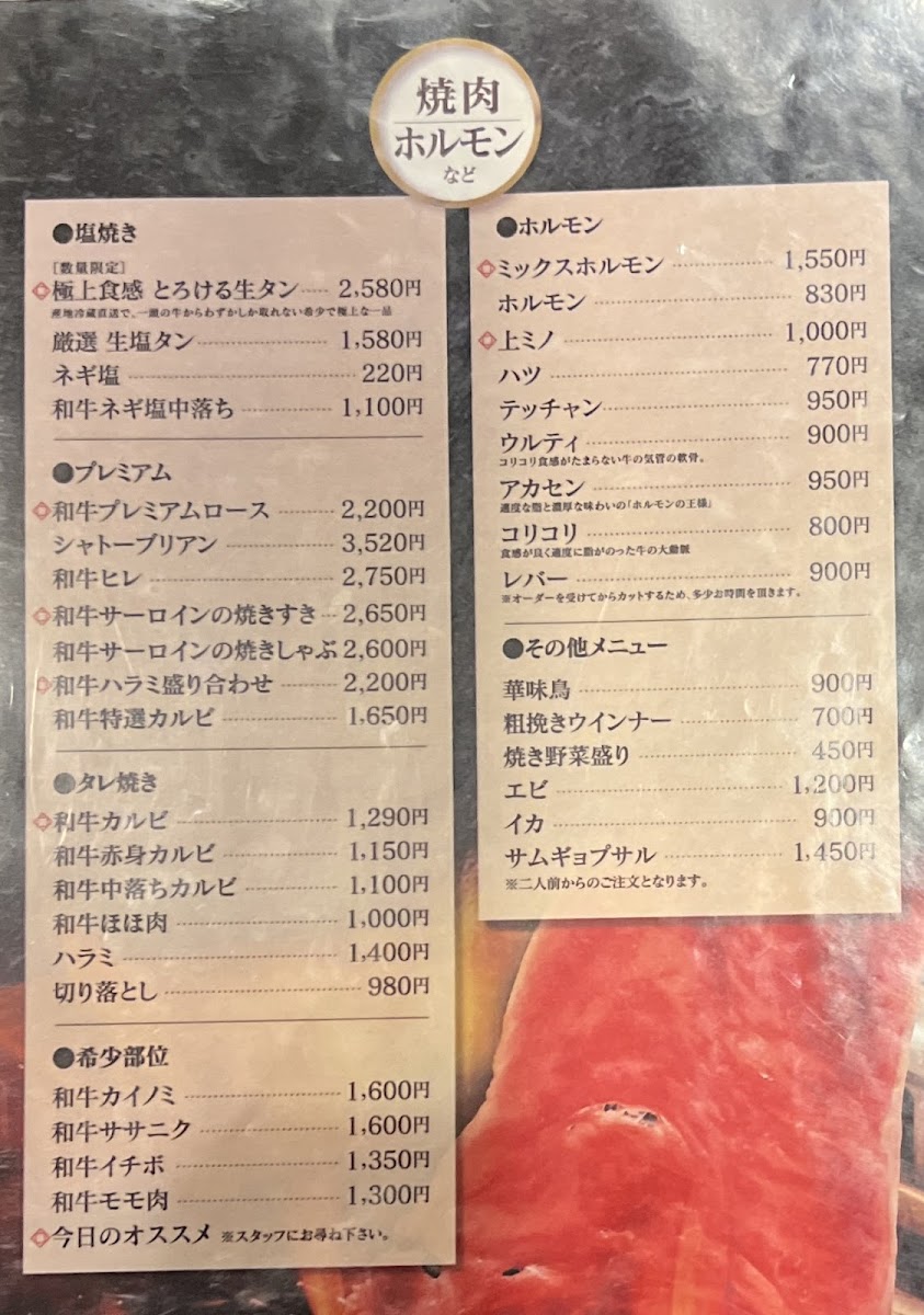 The menu is a highlight, featuring a rich selection of high-quality meats, including the coveted wagyu satoburiang and the highly praised beef tongue. The dishes are further elevated by the unique tare sauce that has been cherished through generations, providing a taste that is distinctive to this establishment. Customers rave about the spicy donchanabe, a delightful must-try for spice aficionados.